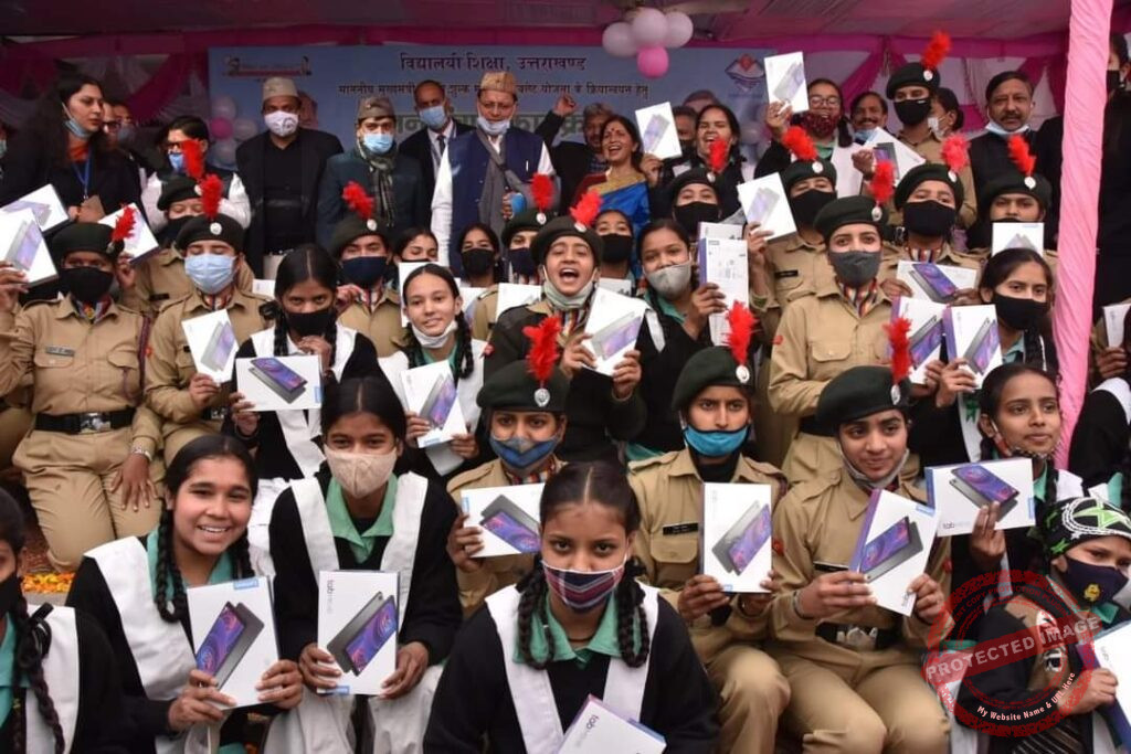 सीएम धामी ने आज राजकीय बालिका इण्टर कॉलेज राजपुर रोड में 100 छात्राओं को निःशुल्क टैबलेट प्रदान किए