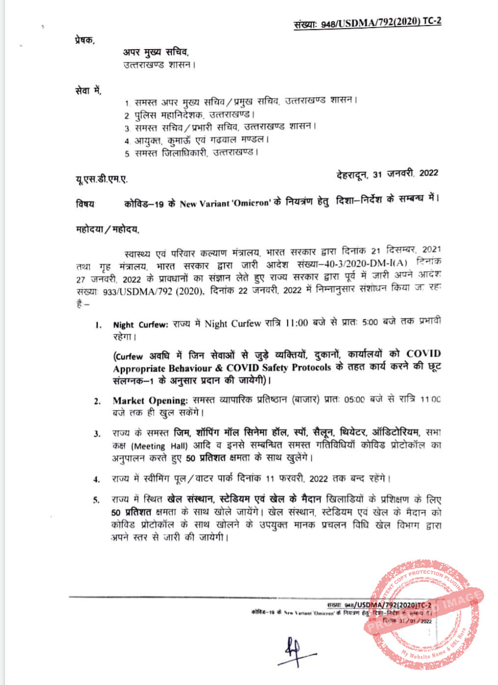 ➡️ राज्य में स्वीमिंग पूल / वाटर पार्क दिनांक 11 फरवरी 2022 तक बन्द रहेंगे।