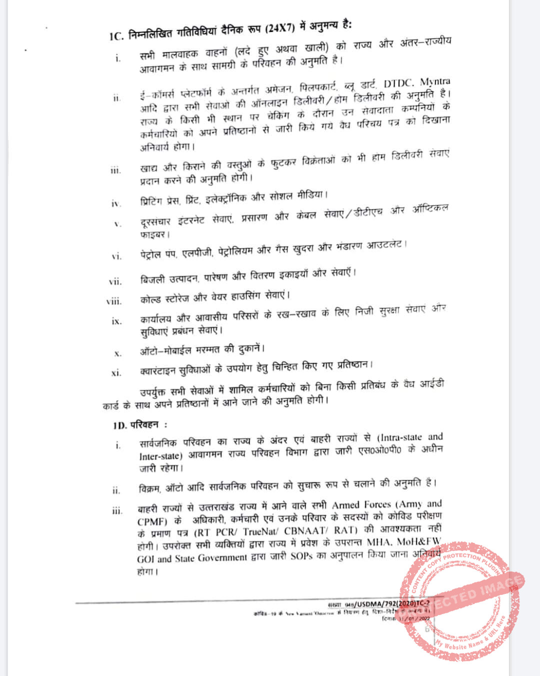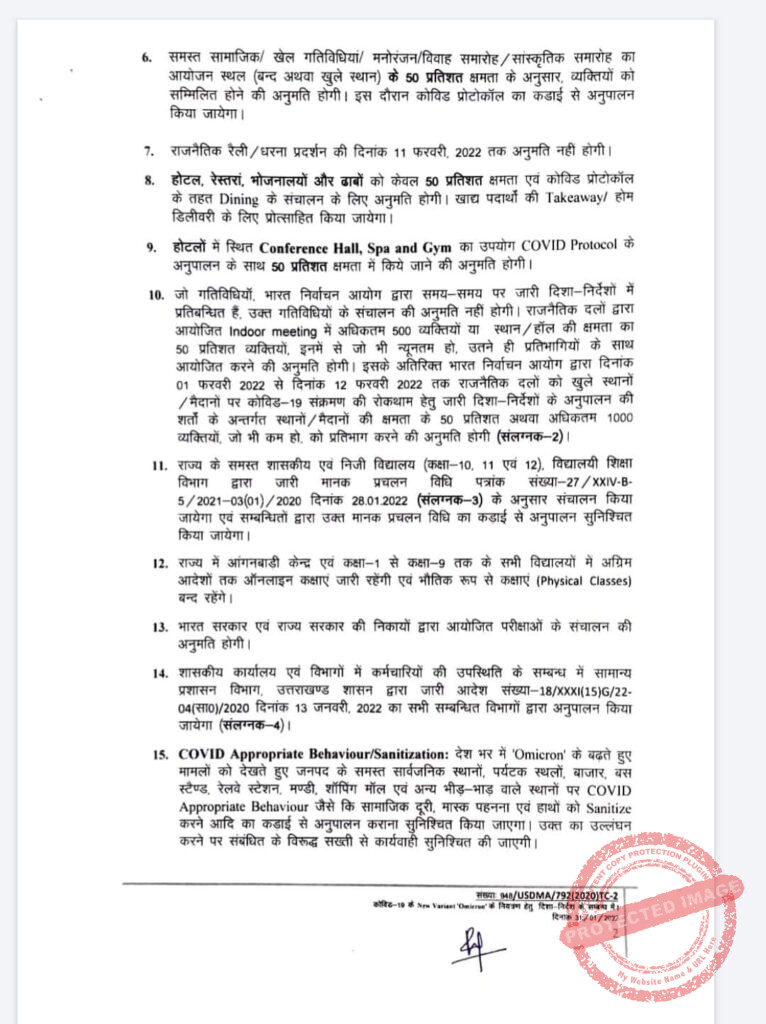 ➡️ राज्य के समस्त जिम, शॉपिंग मॉल सिनेमा हॉल, स्पॉ, सैलून, थियेटर ऑडिटोरियम, सभा कक्ष (Meeting Hall) आदि व इनसे सम्बन्धित समस्त गतिविधियाँ कोविड प्रोटोकॉल का अनुपालन करते हुए 50 प्रतिशत क्षमता के साथ खुलेंगे।