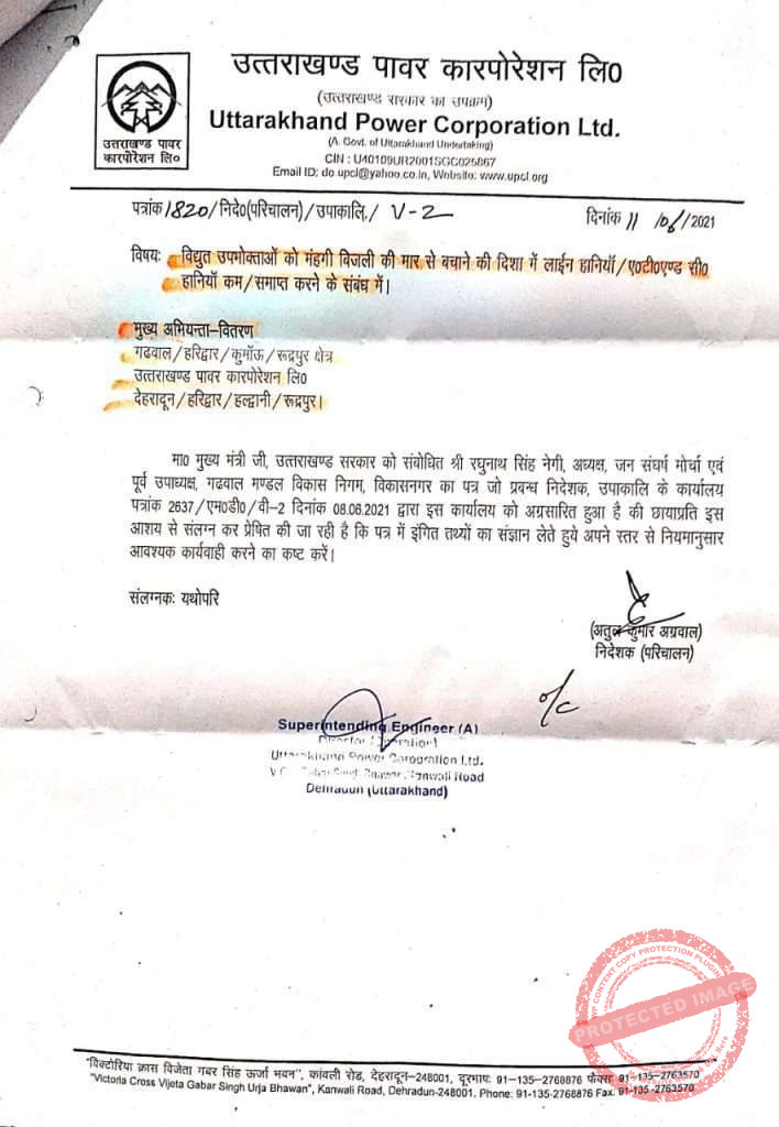 नेगी ने कहा कि *मोर्चा द्वारा वितरण हानियां एवं एटी एंड सी हानियां कम करने हेतु शासन से आग्रह किया गया था, जिसके क्रम में शासन ने एमडी, यूपीसीएल को निर्देश दिए एवं अनुपालन में यूपीसीएल के निर्देश पर विभागीय अधिकारियों ने राजस्व वसूली, विद्युत चेकिंग, विद्युत चोरों के खिलाफ एफआईआर, शिविर/ कैंप लगाकर लाइन लॉस कम करने की दिशा में कार्रवाई शुरू की,जोकि मोर्चा की बहुत बड़ी जीत है।