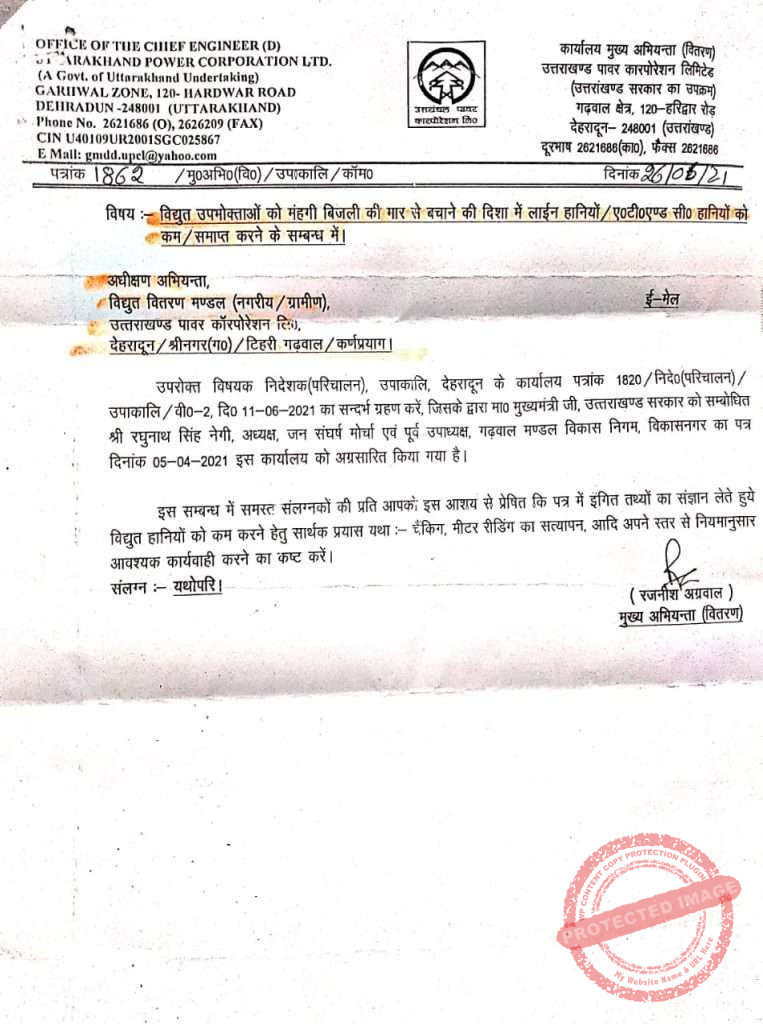 नेगी ने कहा कहा कि वर्ष 2019-20 में सरकार द्वारा 14139.31 मिलियन यूनिट्स खरीदी गई एवं उसके सापेक्ष 12538.65 मिलियन यूनिट्स बेची गई, इस प्रकार 1600. 66 मिलियन यूनिट्स यानी 160 करोड़ यूनिट्स लाइन लॉस में चली गई | इसी प्रकार वर्ष 2018-19 में 14083.69 मिलियन यूनिट्स खरीद के सापेक्ष 12295.20 मिलियन यूनिट्स बेची गई, इस प्रकार 1788.49 मिलियन यूनिट्स लाइन लॉस में चली गई | इस लाइन लॉस की चलते सरकार को प्रतिवर्ष करोड़ों रुपए का आर्थिक नुकसान हो रहा है |इसके अतिरिक्त वितरण एवं ए टी एंड सी हानियां 30- 35 फ़ीसदी हैं।