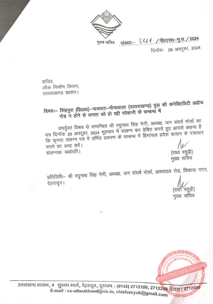 ЁЯУв рджреЗрд╣рд░рд╛рджреВрди: рдЬрди рд╕рдВрдШрд░реНрд╖ рдореЛрд░реНрдЪрд╛ рдХреЗ рдЕрдзреНрдпрдХреНрд╖ рд░рдШреБрдирд╛рде рд╕рд┐рдВрд╣ рдиреЗрдЧреА рдиреЗ рдПрдХ рдмрд╛рд░ рдлрд┐рд░ рдЙрддреНрддрд░рд╛рдЦрдВрдб-рд╣рд┐рдорд╛рдЪрд▓ рдкреНрд░рджреЗрд╢ рдХрдиреЗрдХреНрдЯрд┐рд╡рд┐рдЯреА рдорд╛рдорд▓реЗ рдХреЛ рд▓реЗрдХрд░ рд╕рд░рдХрд╛рд░ рдХреЗ рдЦрд┐рд▓рд╛рдл рдЖрд╡рд╛рдЬ рдмреБрд▓рдВрдж рдХреА рд╣реИред рд╕рд┐рдВрд╣рдкреБрд░рд╛ (рд╣рд┐рдорд╛рдЪрд▓) – рдирд╛рд╡рдШрд╛рдЯ (рдЙрддреНрддрд░рд╛рдЦрдВрдб) рдкреБрд▓ рдХреА рдХрдиреЗрдХреНрдЯрд┐рд╡рд┐рдЯреА рди рд╣реЛрдиреЗ рд╕реЗ рдЬрдирддрд╛ рдкрд░реЗрд╢рд╛рди рд╣реИ, рдЬрдмрдХрд┐ рднреНрд░рд╖реНрдЯ рдЕрдзрд┐рдХрд╛рд░рд┐рдпреЛрдВ рдФрд░ рджрд▓рд╛рд▓реЛрдВ рдХреА рдорд┐рд▓реАрднрдЧрдд рд╕реЗ 50 рдХрд░реЛрдбрд╝ рд░реБрдкрдпреЗ рдХрд╛ рдпрд╣ рдкреБрд▓ рдмреЗрдХрд╛рд░ рдкрдбрд╝рд╛ рд╣реИ!