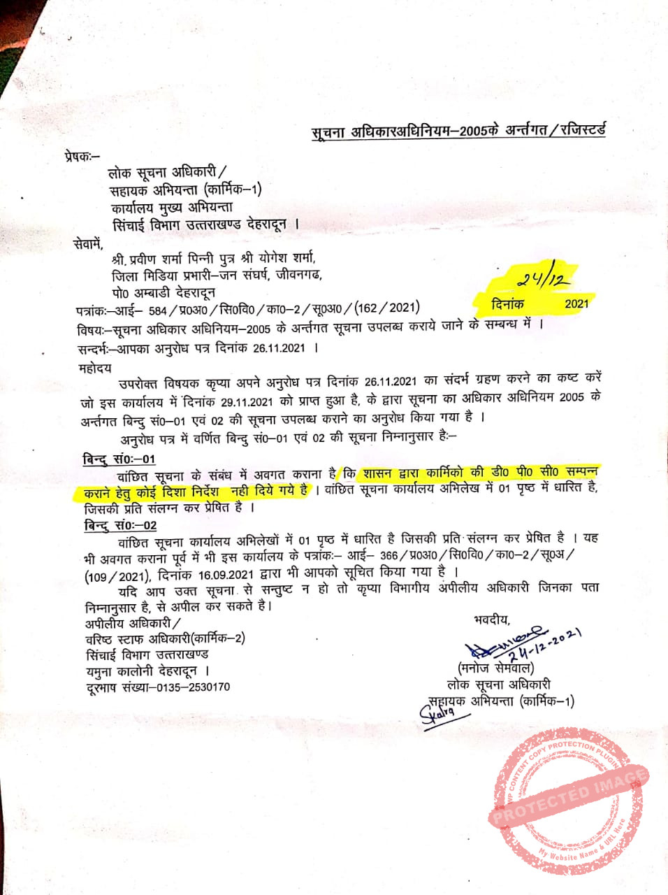 उक्त मामले में ढिलाई बरतने पर मुख्य सचिव द्वारा डीपीसी मामले में शिथिलता बरतते हुए समस्त विभागाध्यक्षों तक को पुनः 9/12/ 21 को पत्र जारी कर कठोर निर्देश दिए गए थे, लेकिन सिंचाई विभाग इससे बेखबर है।