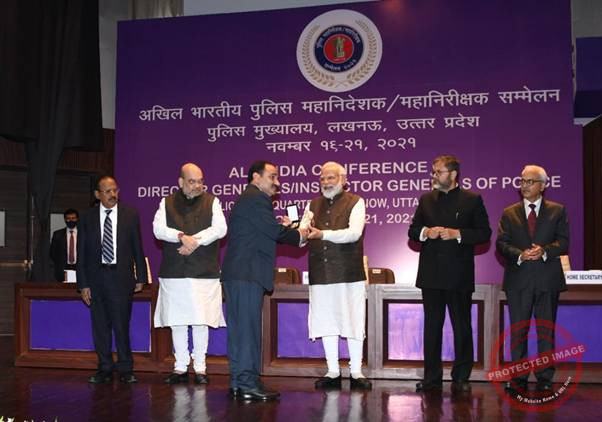प्रधानमंत्री श्री नरेंद्र मोदी 20-21 नवंबर को लखनऊ में आयोजित 56वें पुलिस महानिदेशक/महानिरीक्षक सम्मेलन में सम्मिलित हुए। सम्मेलन में विभिन्न राज्यों/केंद्रशासित प्रदेशों तथा CAPF/CPOs के 62 महानिदेशक/महानिरीक्षक लखनऊ में शामिल हुए। इसके अतिरिक्त, विभिन्न वरिष्ठता के 400 से अधिक अधिकारियों ने देश भर में मौजूद आसूचना ब्यूरो कार्यालयों से वर्चुअल तौर पर इसमें भाग लिया।