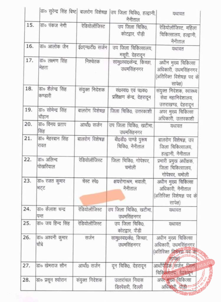 देहरादून- स्वास्थ्य विभाग में हुए डॉक्टरों के बंपर तबादले, लिस्ट जारी