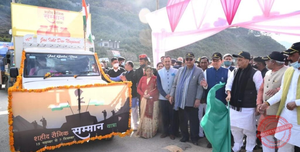 केन्द्रीय रक्षा मंत्री श्री राजनाथ सिंह एवं मुख्यमंत्री श्री पुष्कर सिंह धामी ने आज पिथौरागढ़ के मूनाकोट में शहीद सम्मान यात्रा का शुभारम्भ किया और शहीद सैनिकों के परिजनों को सम्मानित भी किया।