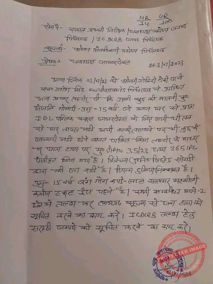 Pithoragarh missing girl anjali: घर से स्कूल के लिए निकली थी अंजलि, उसके बाद से कोई खबर नहीं, परिजनों ने लगाई पुलिस से गुहार, अंजलि की आमा ने सौंपी थाने में तहरीर…
